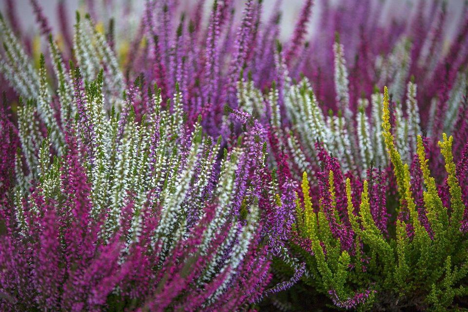 Вереск обыкновенный (Calluna vulgaris) - кустарники высотой до 0,1–0,5 м с чешуевидными листьями и многочисленными мелкими розовыми или розово-сиреневыми цветками. Зацветает в конце VІІ–VІІІ и зачастую уходит с цветками в зиму. Имеет огромное количество сортов, различающихся окраской и махровостью, временем цветения, габитусом и размерами, окраской листвы.