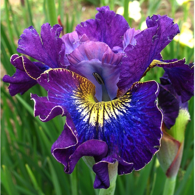 Ирис сибирский Раффлз Энд Фларишиз (Iris sibirica Ruffles And Flourishe) - Высота 84 см среднепоздний. Сильногофрированный красно-фиолетовый цветок с ярко-жёлтым сигналом и синим пятном на нижнем лепестке.